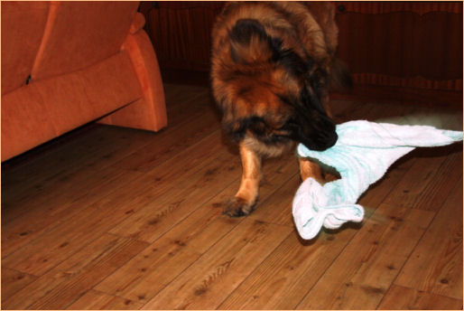 | Frauchen schrieb: Wie Ihr seht hilft Duky mir bei der Hausarbeit. | |
