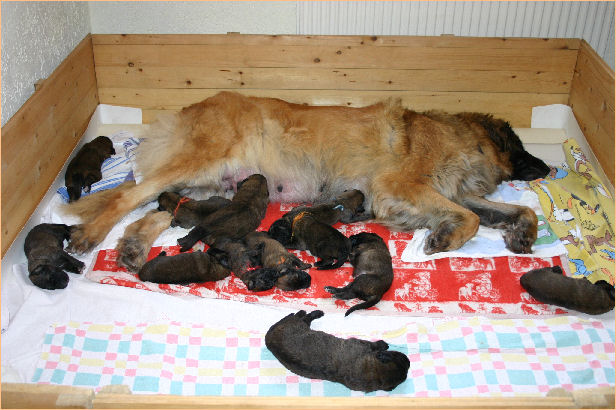 | Beide Mami´s kümmern sich liebevoll um alle Welpen. | |||||